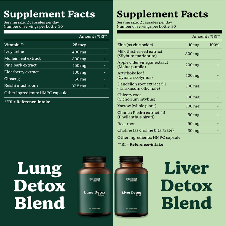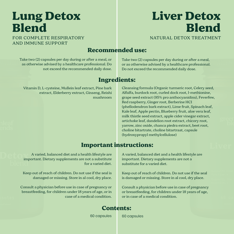 • Lung Detox: 2 capsules per day-1 in the morning and 1 in the evening.