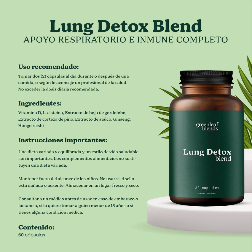 Si está buscando favorecer la limpieza de las vías respiratorias y estimular los procesos naturales de desintoxicación de su cuerpo, Lung Detox Blend es una excelente opción. Los clientes que ya lo han probado confirman su eficacia para favorecer la salud pulmonar y el bienestar general.