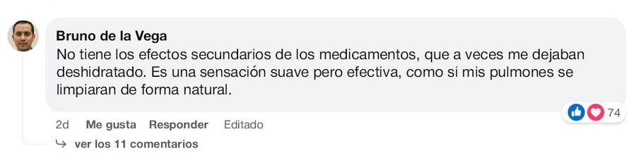 Después de unas semanas de uso noto una clara mejoría. Toso menos y siento mis pulmones mucho más claros, especialmente por la noche. ¡No esperaba ver resultados tan rápido!