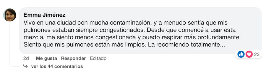 'Mi sensibilidad a las irritaciones ambientales me provocaba constantemente tos y dificultad para respirar, lo que me molestaba mucho. ¡Busqué una solución natural y la encontré en esta mezcla! Es suave, pero al mismo tiempo muy eficaz. Siento que mis pulmones finalmente se aclaran después de años de malestar. Me gusta cómo este producto apoya mi cuerpo de forma natural, sin productos químicos pesados. Se lo recomendaría a cualquiera que busque alivio”. - J Monteverde