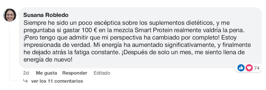 He estado lidiando con los síntomas de fatiga crónica durante años, pero desde que comencé a usar Smart Protein Blend hace 3 meses, me siento llena de energía. La diferencia es tan notable que incluso si lo dejo de tomar un solo día, lo noto de inmediato. ¡Sin duda lo seguiré usando!