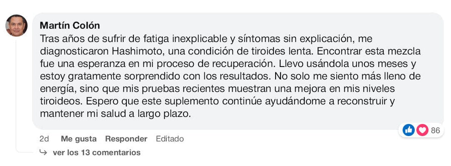 Por recomendación de mi médico, decidí probar la mezcla Smart Protein para ayudar con mis problemas de tiroides, y estoy muy impresionado con los resultados. En solo unas semanas, noté una mejora significativa y empecé a sentirme con más vitalidad. Después de cinco meses, mi salud ha dado un gran salto hacia adelante. Estoy feliz de haber optado por este producto y lo recomendaría a cualquiera que busque mejorar su función tiroidea.