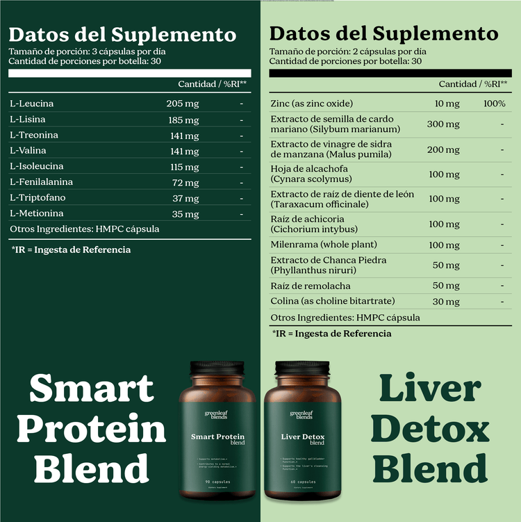 - Liver Detox: 2 cápsulas al día: 1 por la mañana y 1 por la noche.