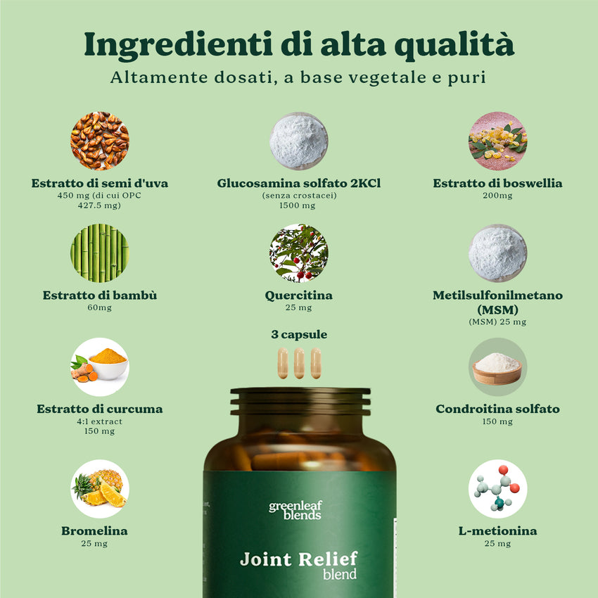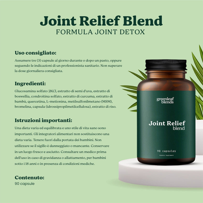 Se non sei soddisfatto dell'efficiacia del Joint Relief blend sui tuoi sintomi, invia un’email a support@greenleafblends.com entro i prossimi 365 giorni.