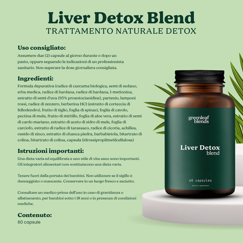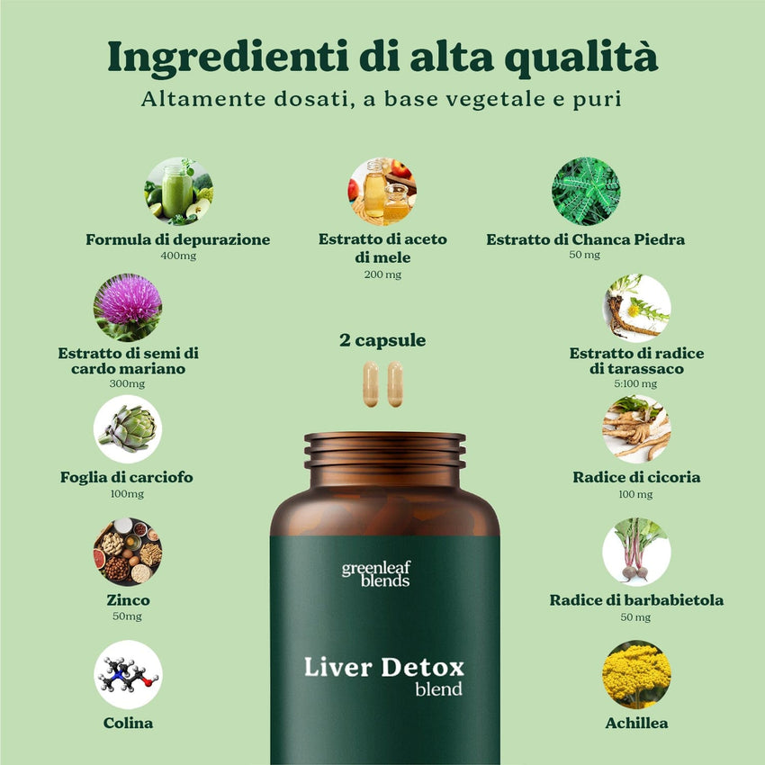 Se non sei soddisfatto dell'efficiacia del Liver Detox Blend sui tuoi sintomi, invia un’email a support@greenleafblends.com entro i prossimi 365 giorni.