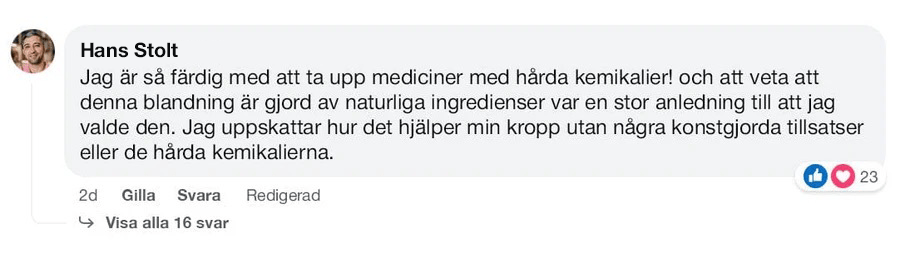 ”I flera år kämpade jag med dålig lunghälsa och sökte desperat efter en lösning som inte innebar ytterligare mediciner. Denna naturliga formel har varit ett perfekt svar. Min andning har blivit smidigare och jag känner mig betydligt mer energisk hela dagen. Eftersom jag bor nära en trafikerad motorväg hade föroreningar allvarligt påverkat min lunghälsa. Nu upplever jag äntligen lättnad. Det är häpnadsväckande hur en enkel örtblandning kan åstadkomma en så stor skillnad!” - Nina Leander
